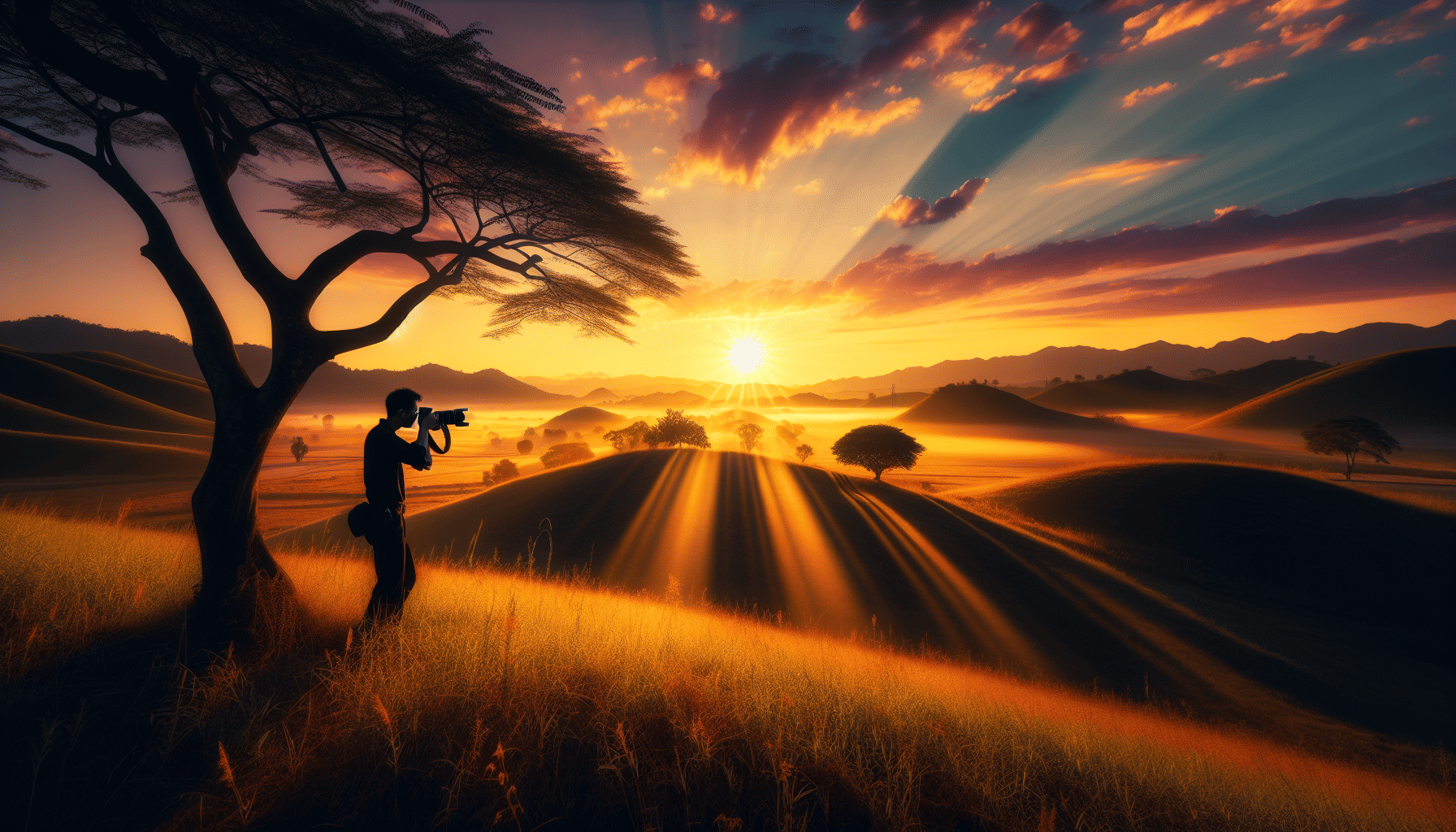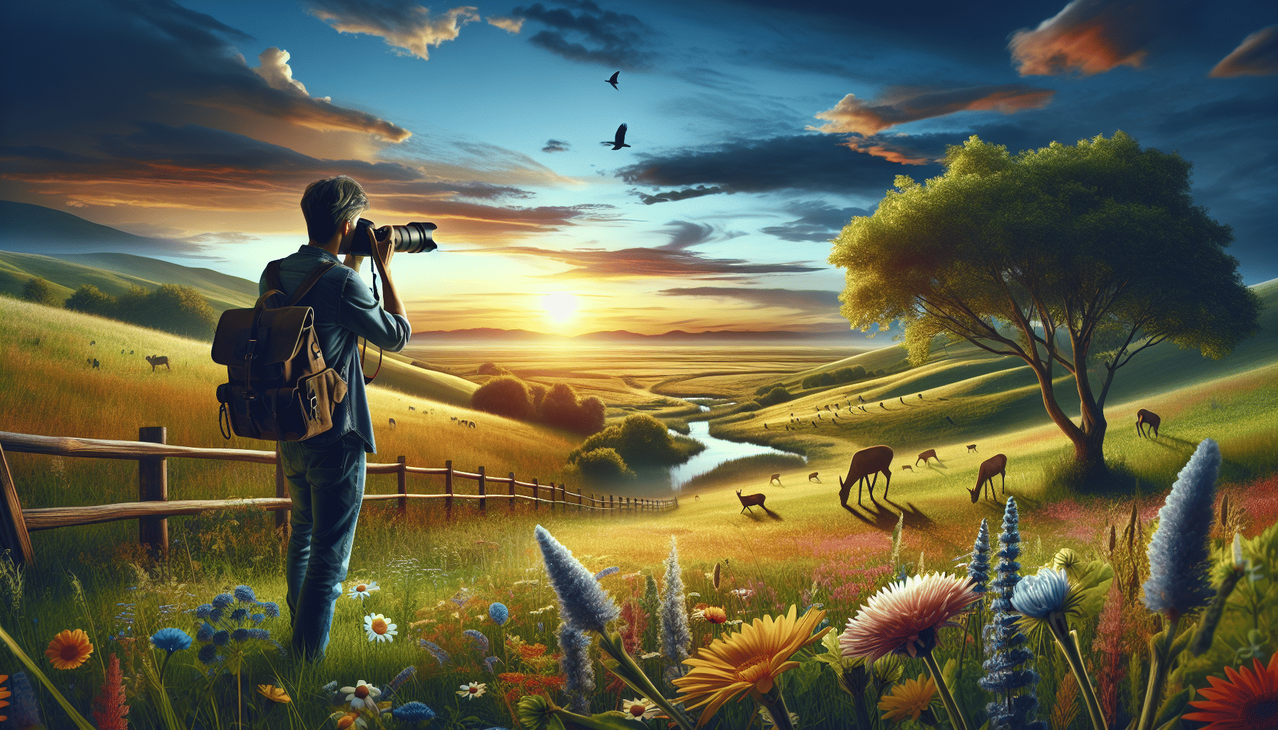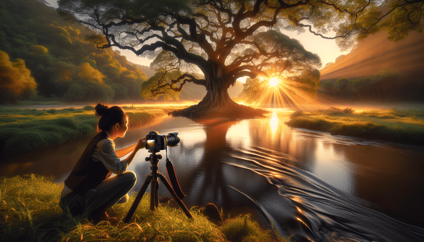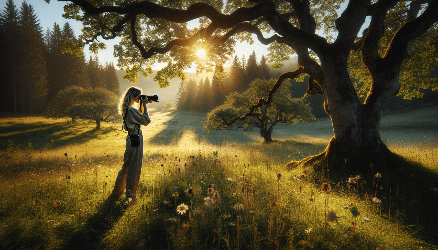 Focus on the natural light and timing, capturing the early morning or late afternoon for soft, golden lighting.